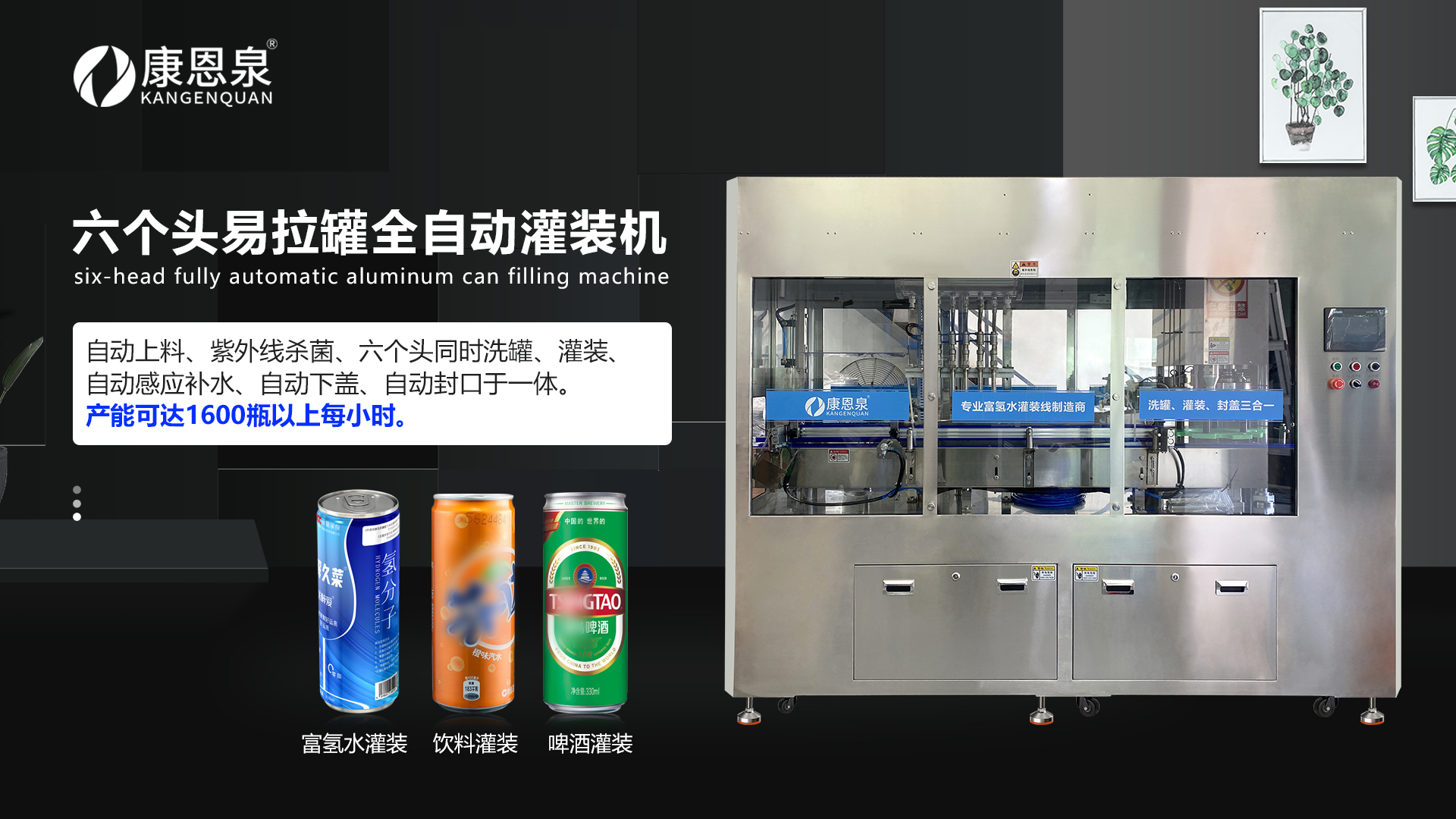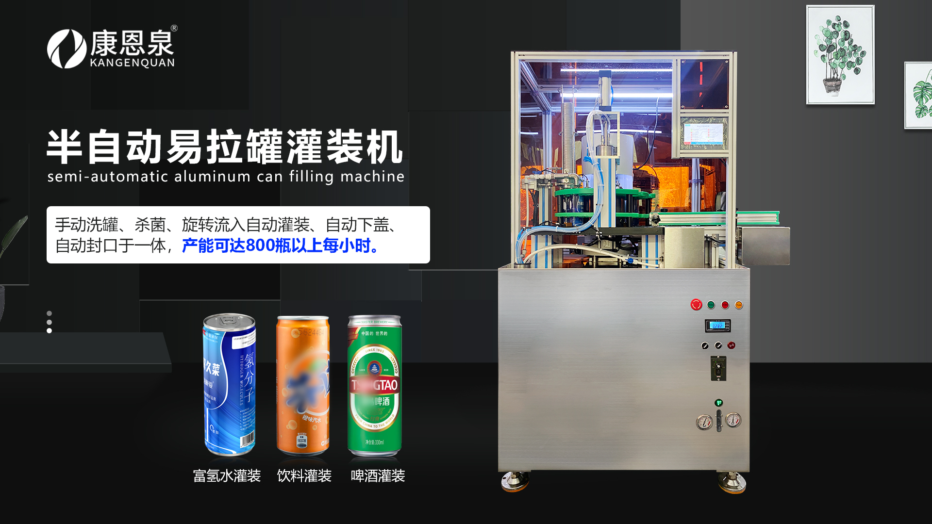 3. 全自动/半自动/手动易拉罐灌装机定制,每小时可灌装200罐至1600罐左右;可选配套标机、打码机、吹干机、装箱等一体化自动生产线,都能根据客户的场地大小、产能需求、预算,量身定制方案,一站式落地,不用客户费心搭配。